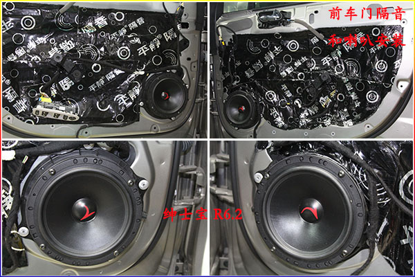 下图:对前车门进行第二层隔音和安装 绅士宝R6.2 喇叭